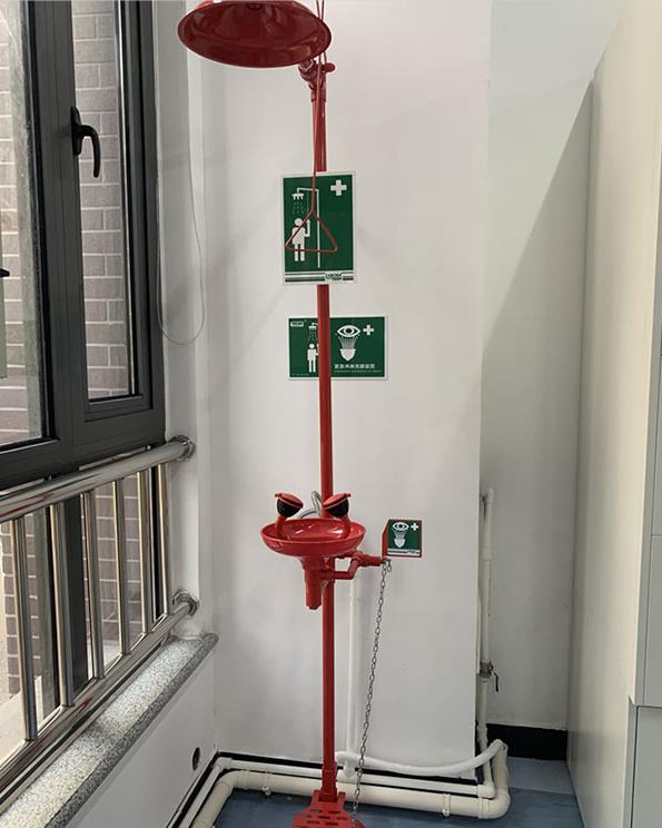 冲淋器:304不锈钢; 紧急冲淋洗眼器用于冲洗全身; 紧急冲淋洗眼器的冲淋开关球阀能在1秒内快速启动。